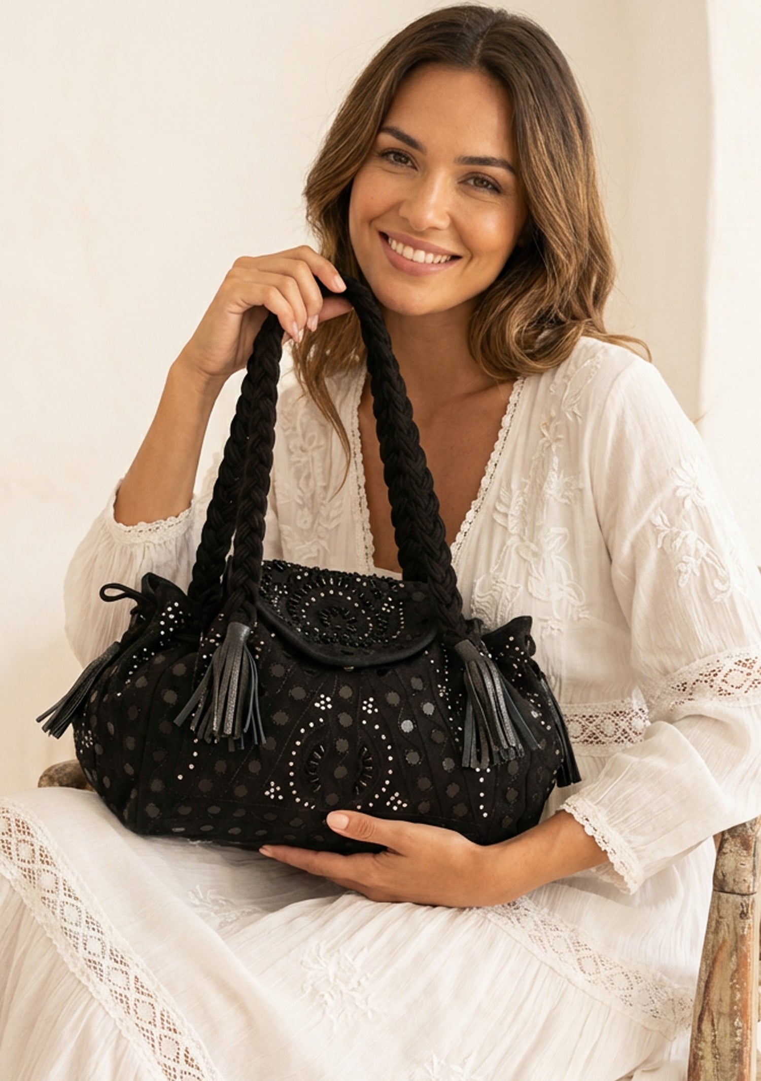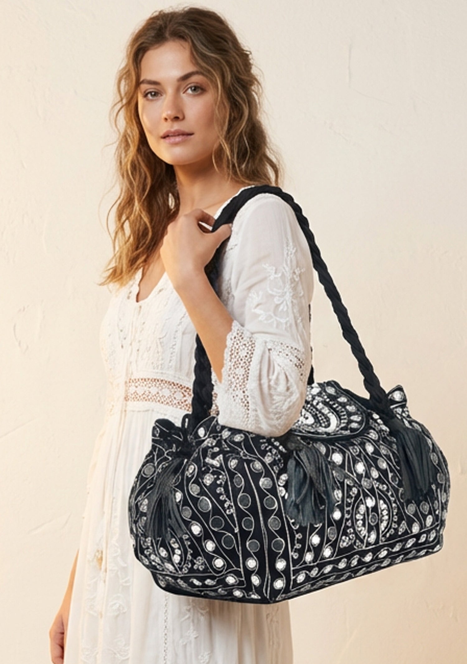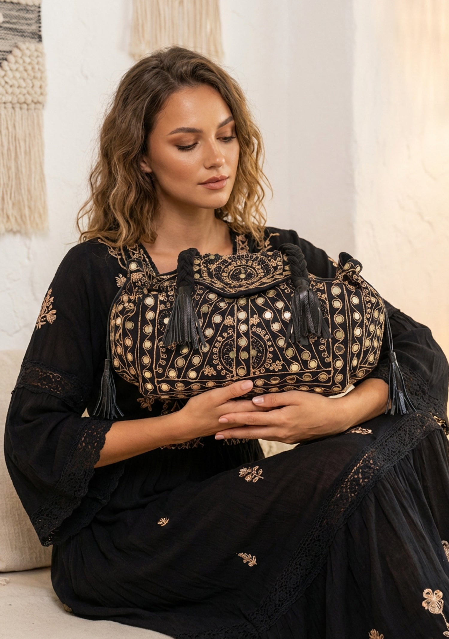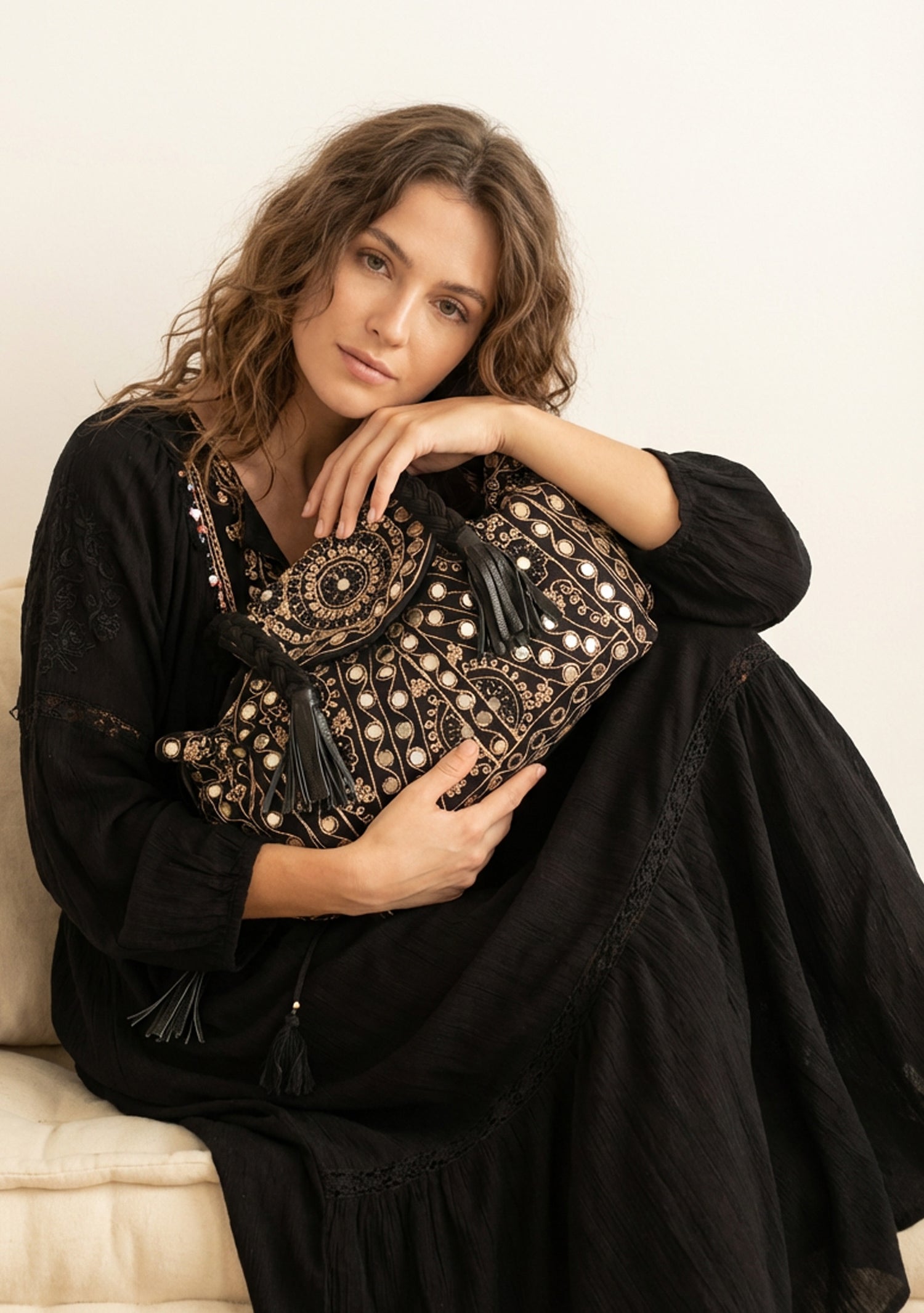 • Decorative tassel accents
